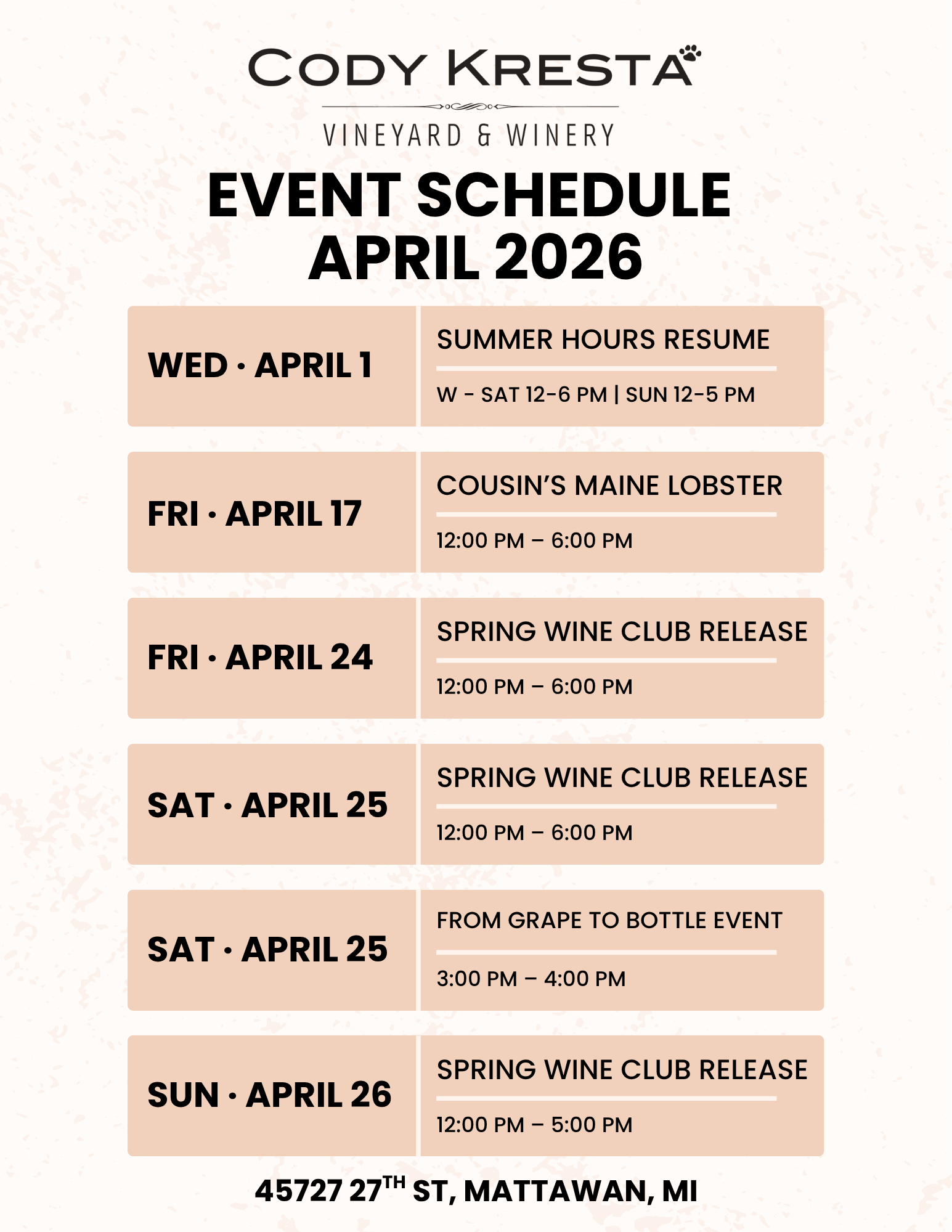 Here are our April events 😉 We will be CLOSED on Easter Sunday.