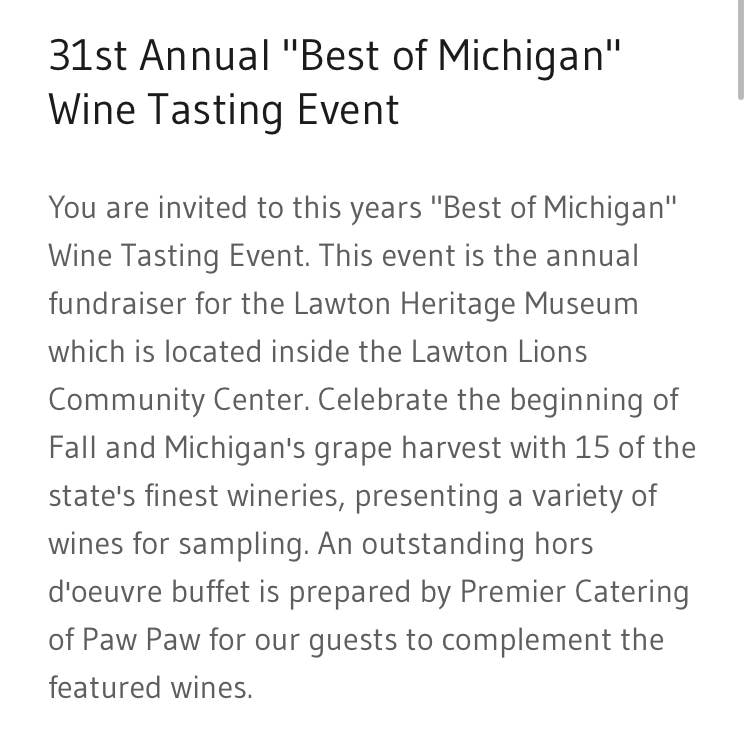 Come see us at the 31st Annual Best of Michigan Wine Tasting event!! Visit many Southwest Michigan wineries and enjoy wine tasting from them all. For more information and ticket sales visit “31st annual Best of Michigan Wine Tasting” Our tasting room will close at 5pm on this day to set up for the event 😉
